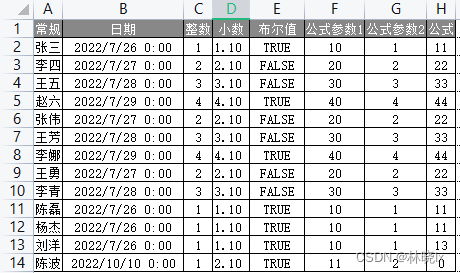 常规类型 常规类型是C#基本数据类型,直接输出的为单元格值