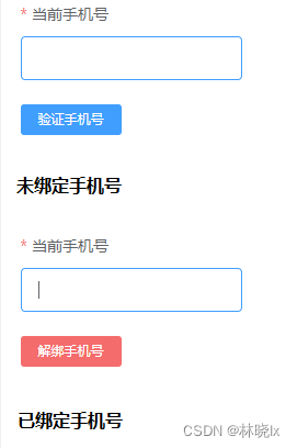 创建新手机号输入框,若没有绑定手机,附带绑定按钮,按下后将发送验证码;若已绑定手机,需要先解绑,才能绑定新号码,附带解绑按钮,按下后将发送验证码