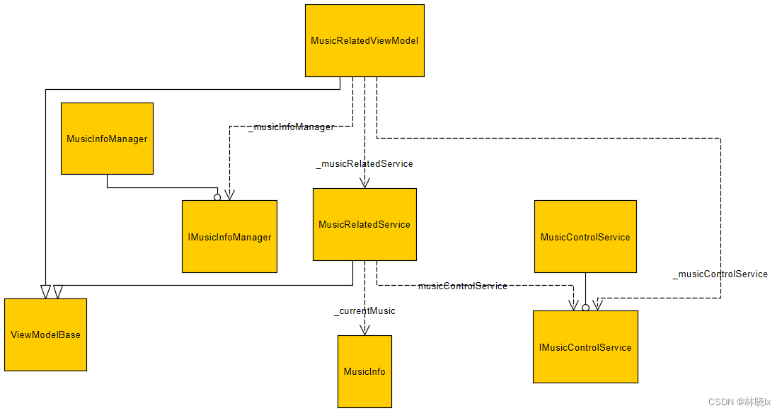项目遵循MVVM设计模式,MusicRelatedViewModel作为音乐播放相关ViewModel的基类,包含了曲目管理器IMusicInfoManager和播放控制服务IMusicControlService对象,通过双向绑定开发者可以从表现层轻松进行音乐控制和曲目访问