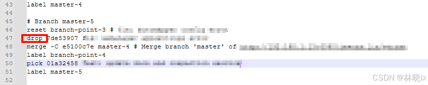 然后在打开的编辑器中把 7de53907... 那一行改为 drop,保存退出即可。