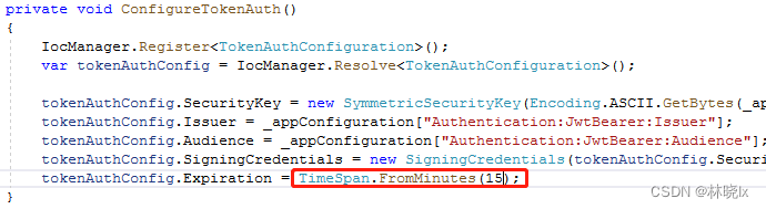 在WebCoreModule中,将Jwt Bearer Token的过期时间从默认的1天改为15分钟
