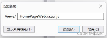 在Views目录下创建HomePageWeb.razor,这是Vue应用页面相当于Vue的单文件组件,这里可以使用Vue的模板语法,而不是Blazor的Razor语法。