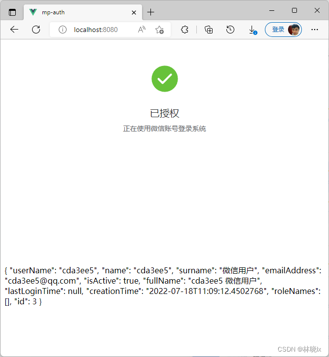 GetCurrentUser接口返回正确数据,并显示于web页面之上