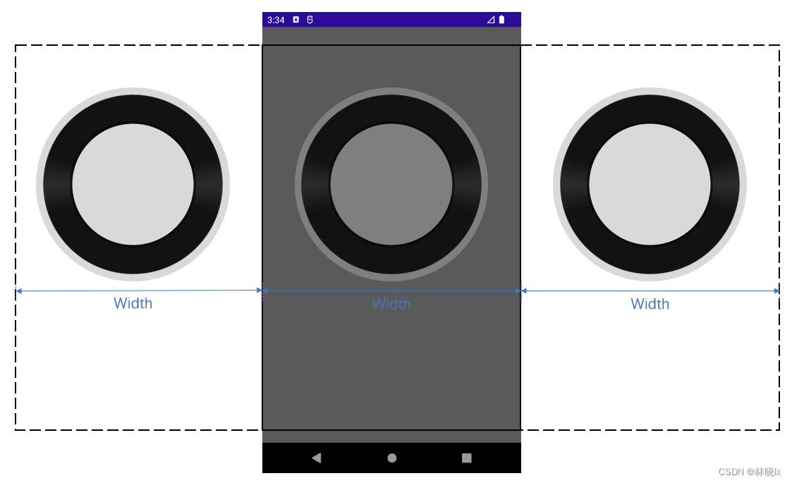 在左右滑动的全程中,唱盘的中心点与相邻唱盘的中心点距离,应为屏幕宽度。如下图所示