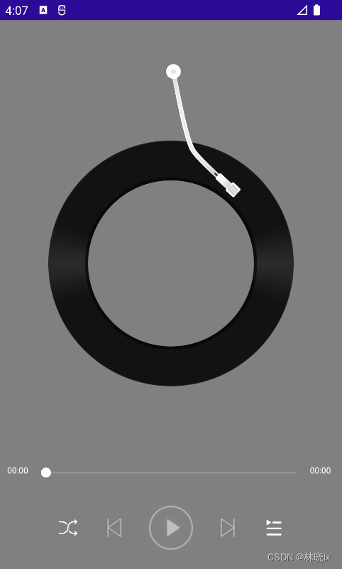在拨动唱盘或切歌时,唱针将从唱盘上移开,通过旋转唱针图片30度来实现唱针移开的效果。