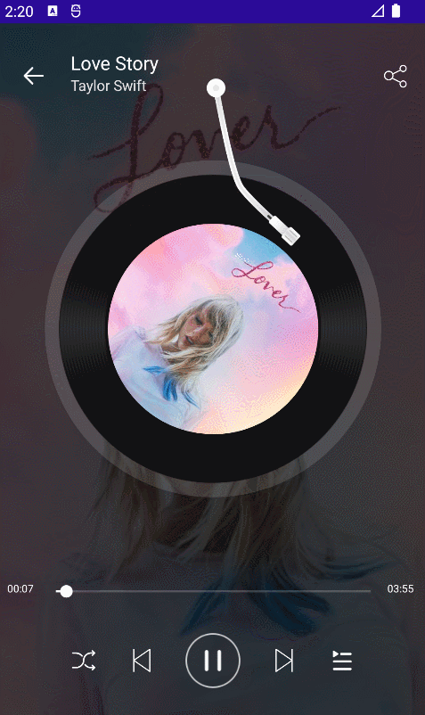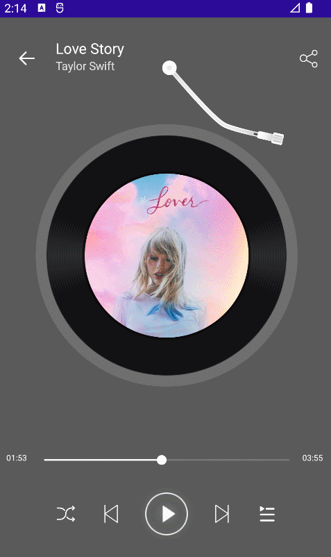 在NowPlayingPage中创建一个Animation对象,用于控制唱盘旋转。