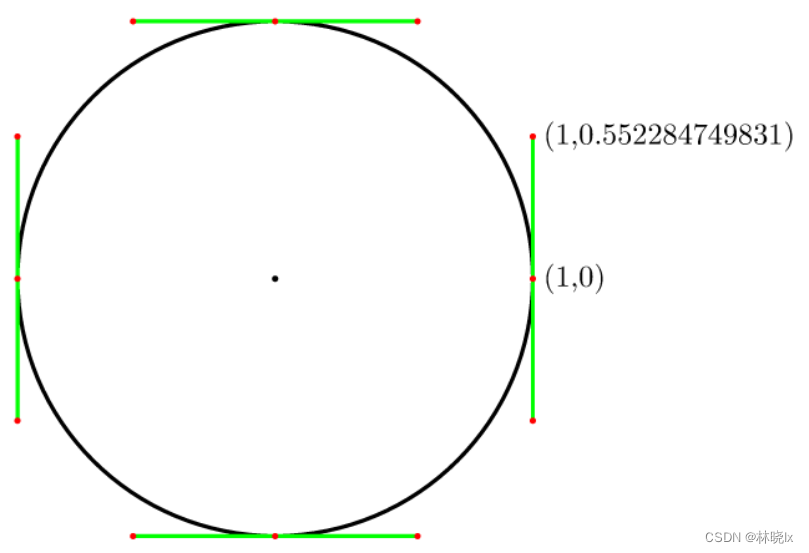 因此,对于4分,它是(4/3)tan(pi/8) = 4 (sqrt(2)-1)/3 = 0.552284749831。