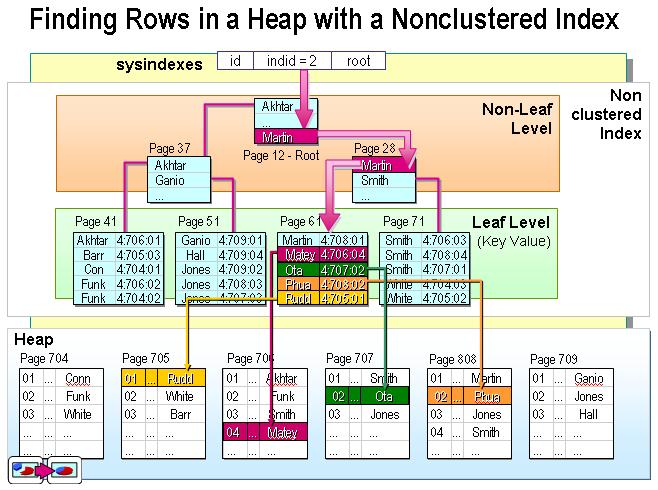 非聚集索引叶节点仍然是索引节点,只是有一个指针指向对应的数据块,此如果使用非聚集索引查询,而查询列中包含了其他该索引没有覆盖的列,那么他还要进行第二次的查询,查询节点上对应的数据行的数据。