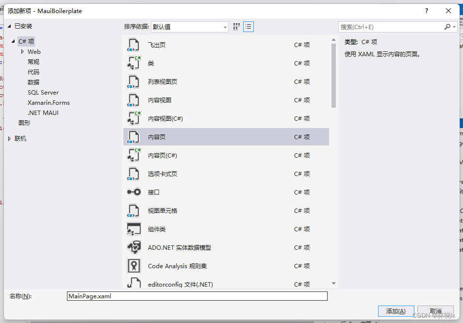 注意这个页面将继承MauiBoilerplate.ContentPageBase