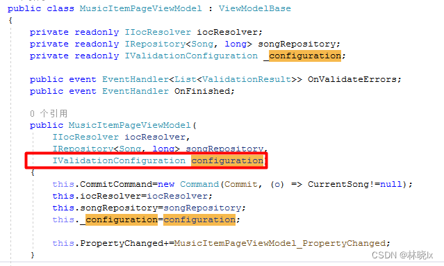 首先在MusicItemPageViewModel 构造函数中添加对IValidationConfiguration对象的注入