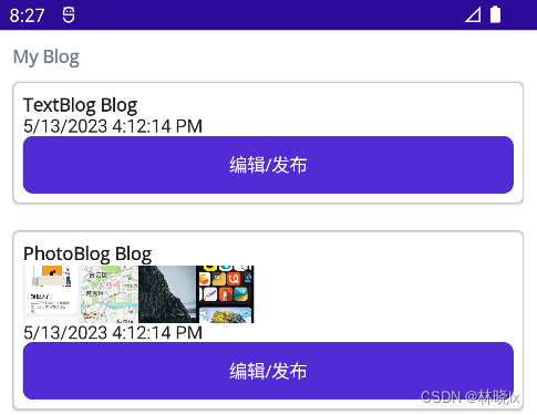 则列表中的每个博客条目将根据博客类型,使用不同的数据模板进行渲染。