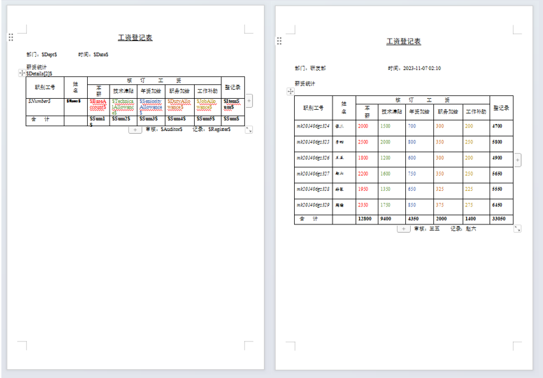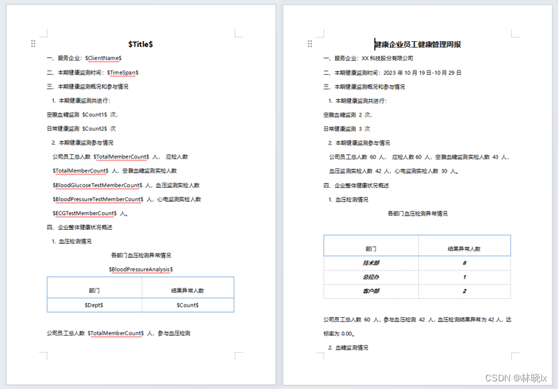 Exporter将扫描文档中所有占位符,然后根据占位符的名称,从数据源中获取对应的文本值或图片内容,替换到文档中。