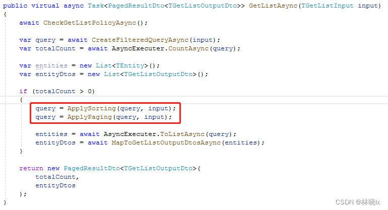 CrudAppService为我们提供了基本的增删改查,以及分页、排序的实现