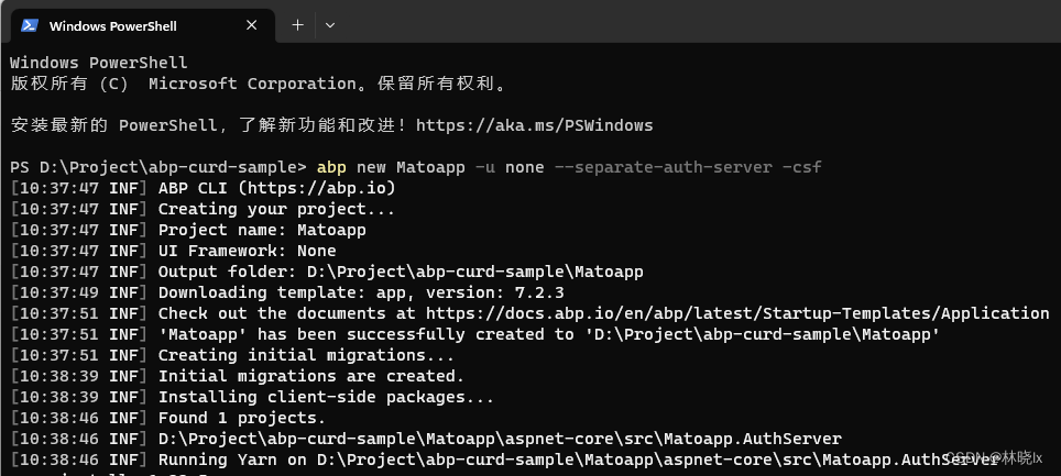 使用AbpCli 创建一个无UI的项目 拆分Auth Server,执行以下命令